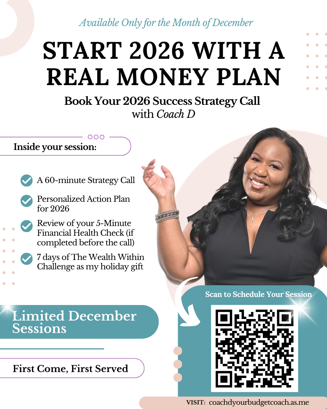 "Coach D was very professional through all of my sessions! I love how down to earth she has been and making me feel comfortable with helping me get my finances and budget in order! I have now paid off 2 credit cards and I'm working my way to paying off my 3rd! I also have a savings with money in it lol! It was very hard to start because I didn't want her to look down at me for not knowing how to budget but that is definitely not the case! Thank you again for your help!"
